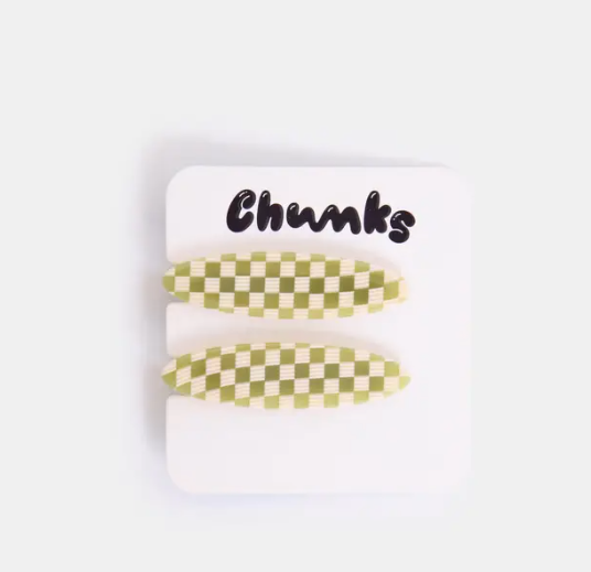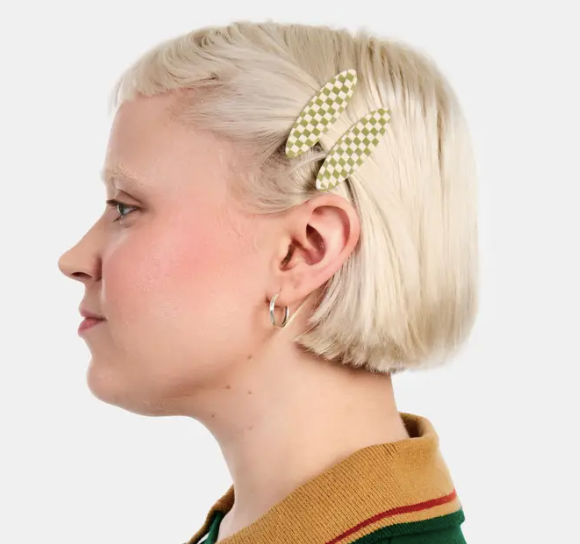 Allie Clip in Oval Olive Check