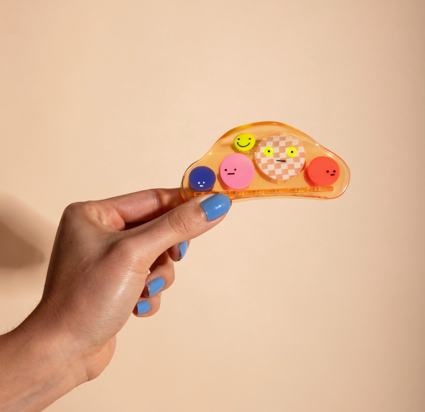 Add some flair to your hair with this adorable hair claw featuring many faces! Made from cellulose acetate, a plant-based alternative to plastic. Lovingly designed by Carolyn Suzuki in Los Angeles, CA .