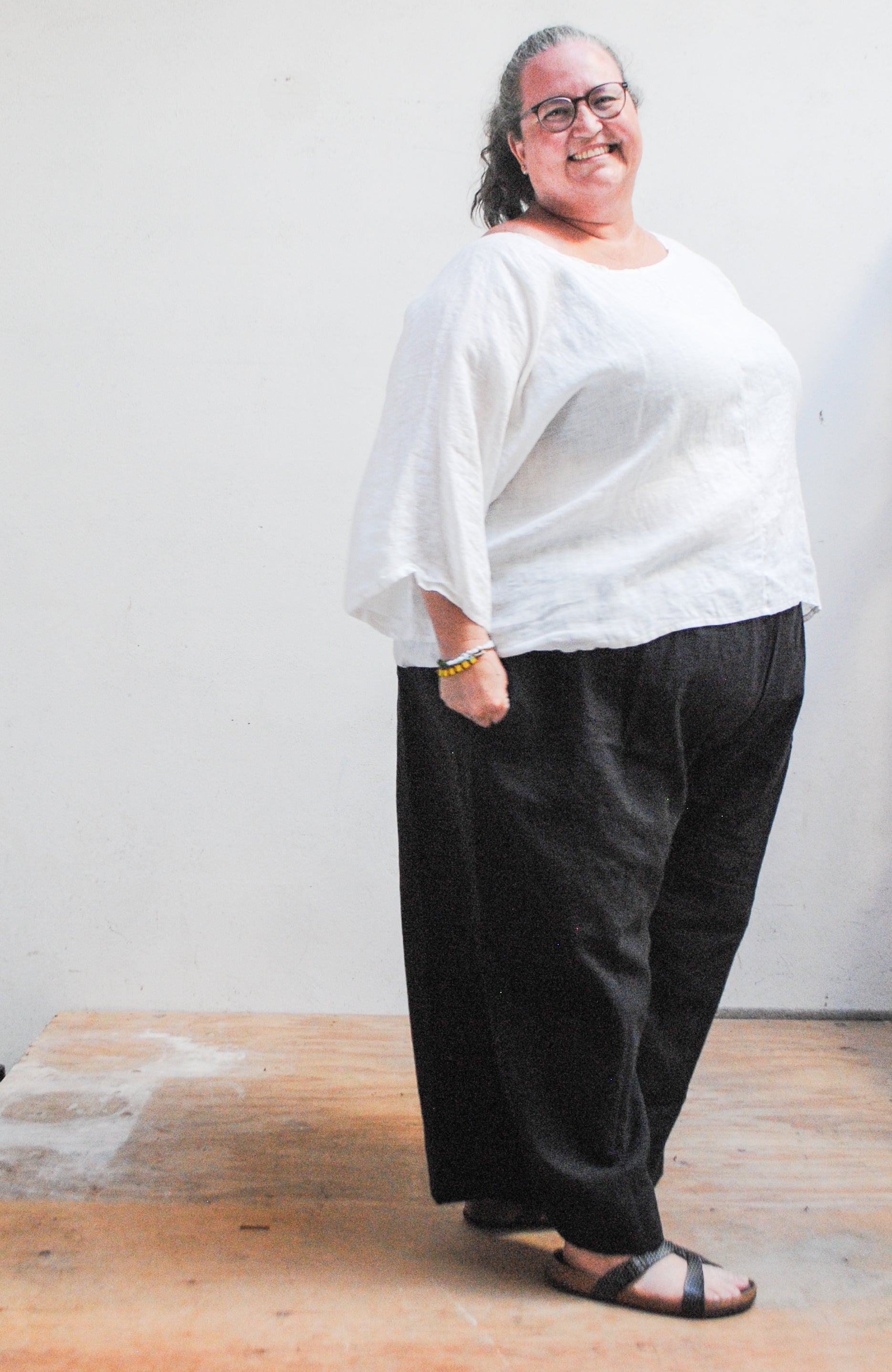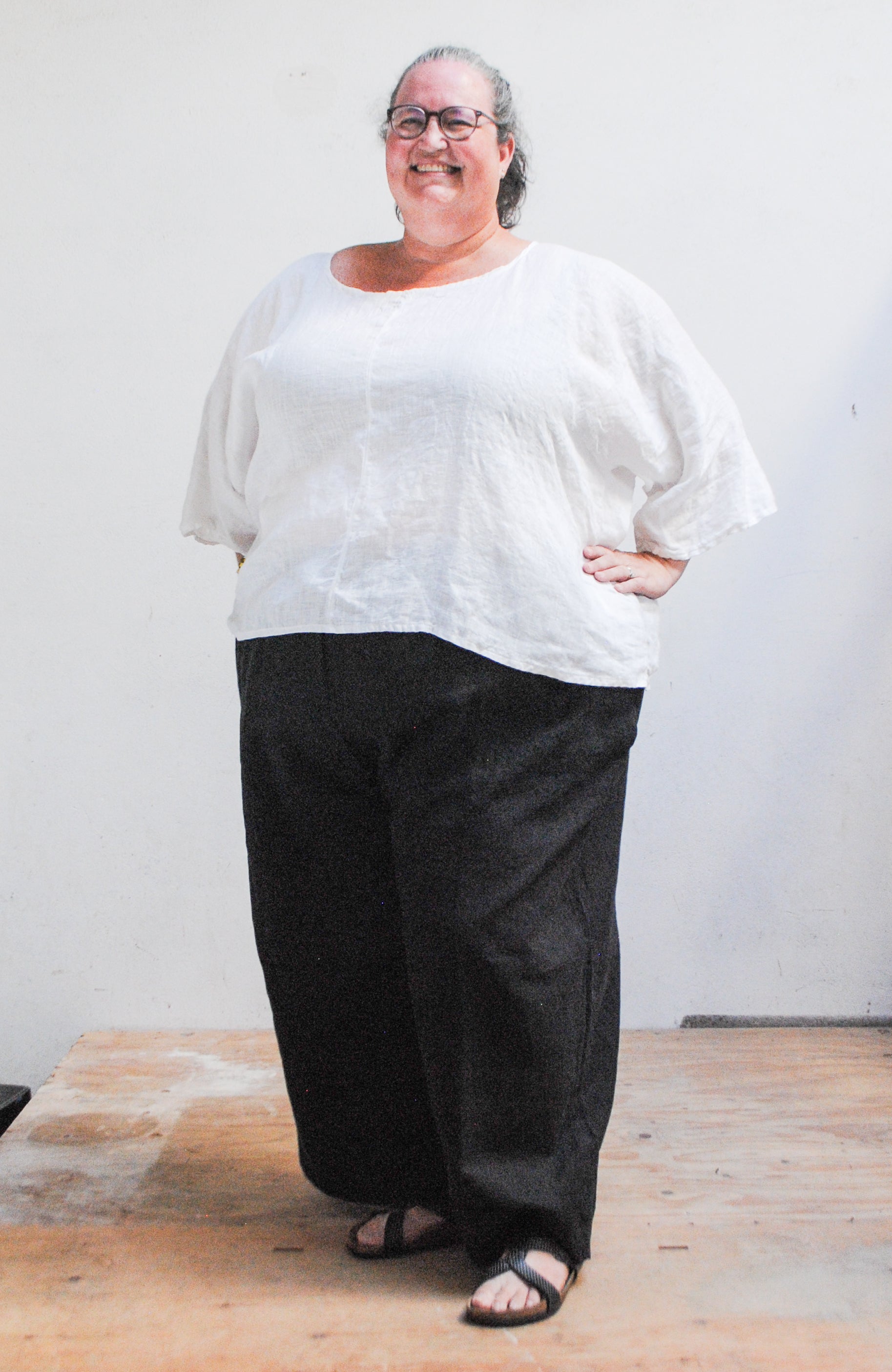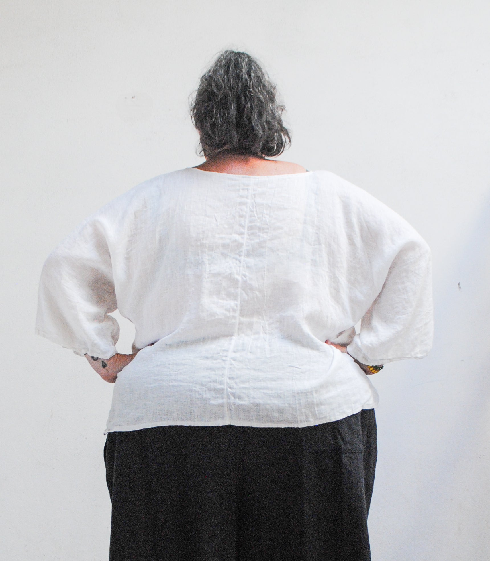 This sheer-ish linen shirt is perfect on its own but also shines when layered. Similar in shape to the Elbow Shirt, but with a slightly longer length and much wider sleeves, this shirt's fabric has been kept purposefully wrinkly to amp up the casual vibe. Subtle center front and center back seams give it *just* enough visual interest. We recommend hang drying for ultimate wrinkly-ness.