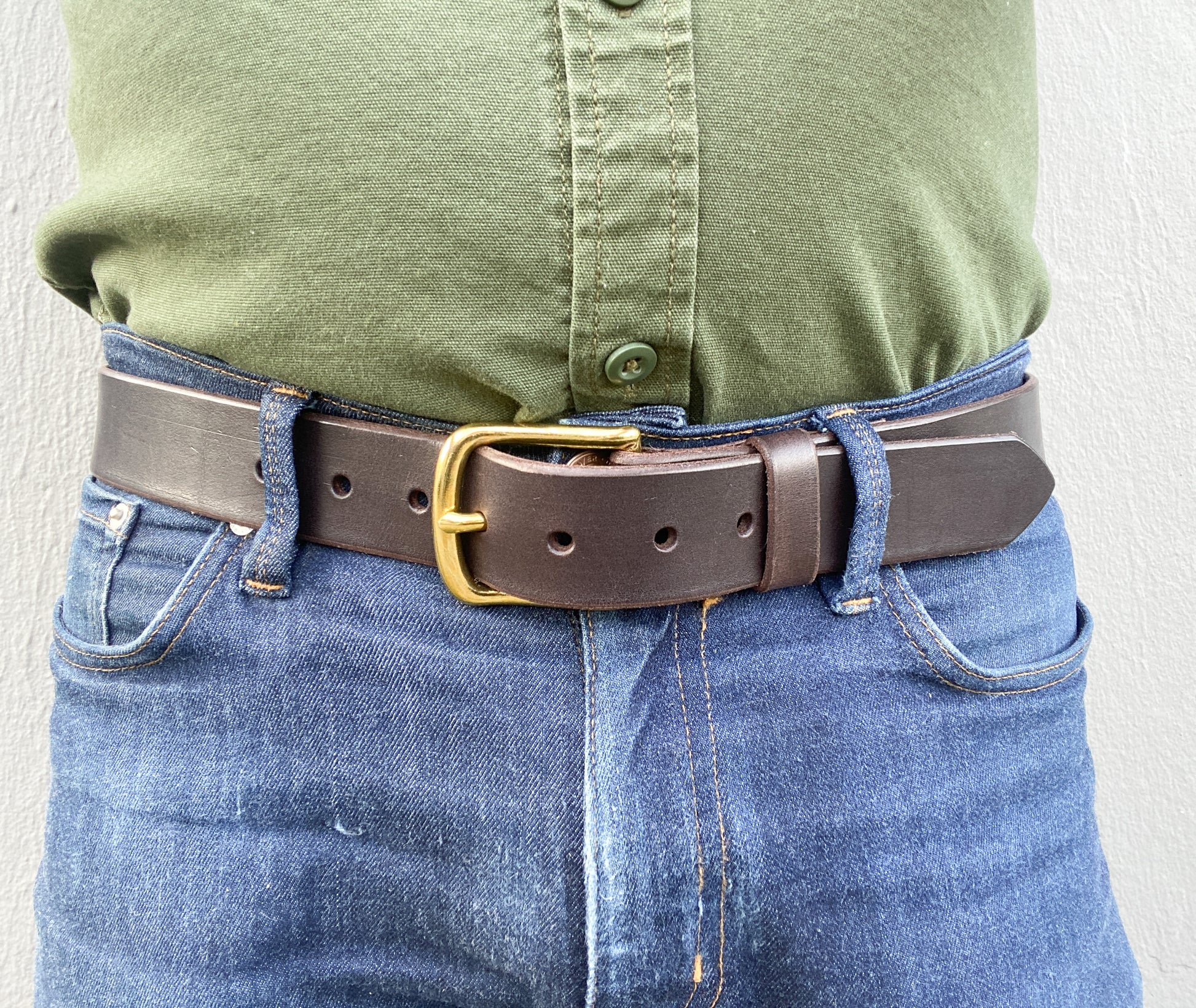 This sturdy belt will last you many, many years! 1.5" wide. Made from 8-9 oz. Veg-Tanned leather. Belt has 7 holes, one inch apart. The middle hole will match your waist measurement. Belt can be made for up to 65" waists. Please measure! Standard pants sizing and belt sizing are not always reflective of your accurate waist measurement.