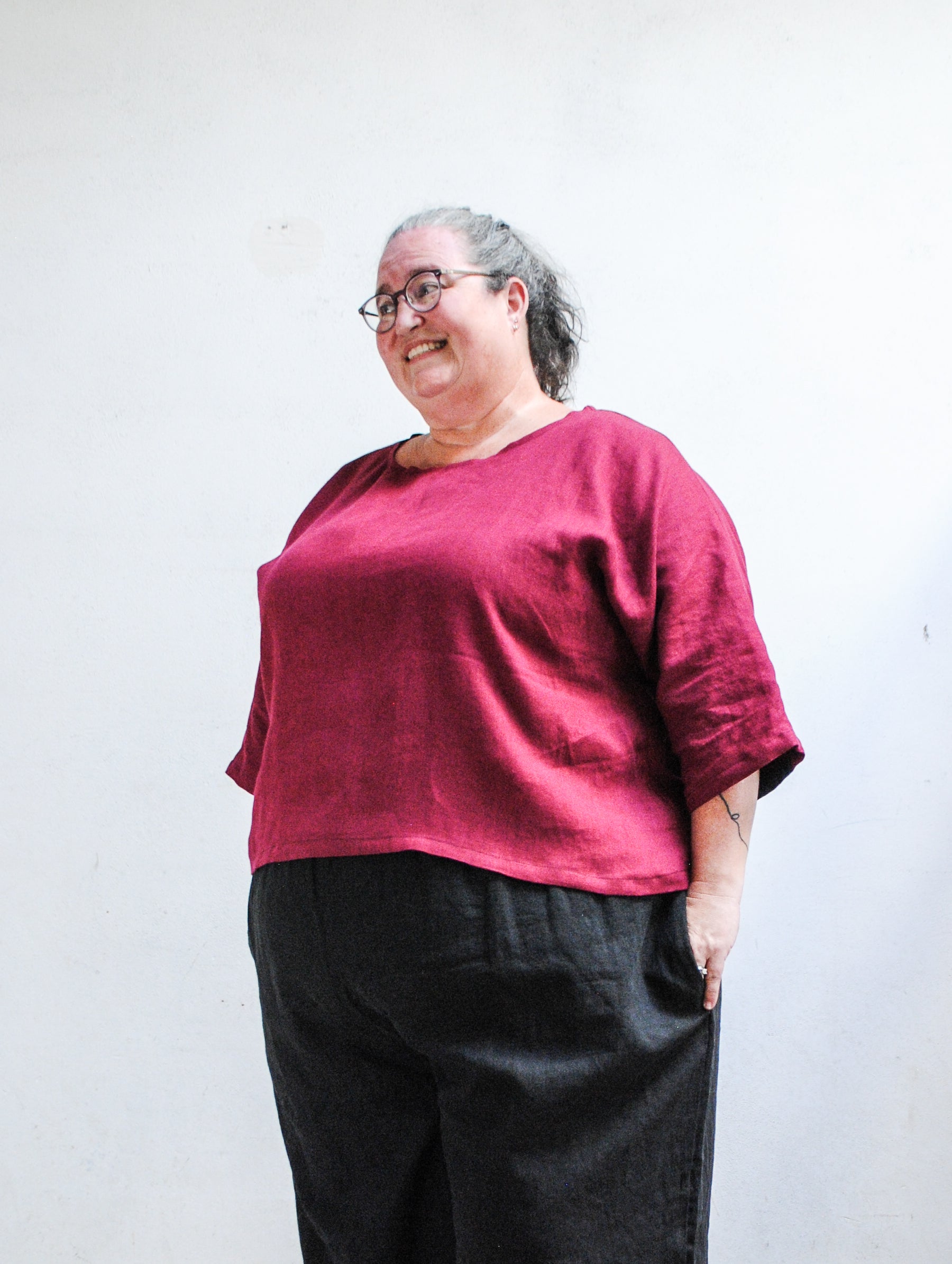 Made To Order Elbow Shirt - Beet Red Linen