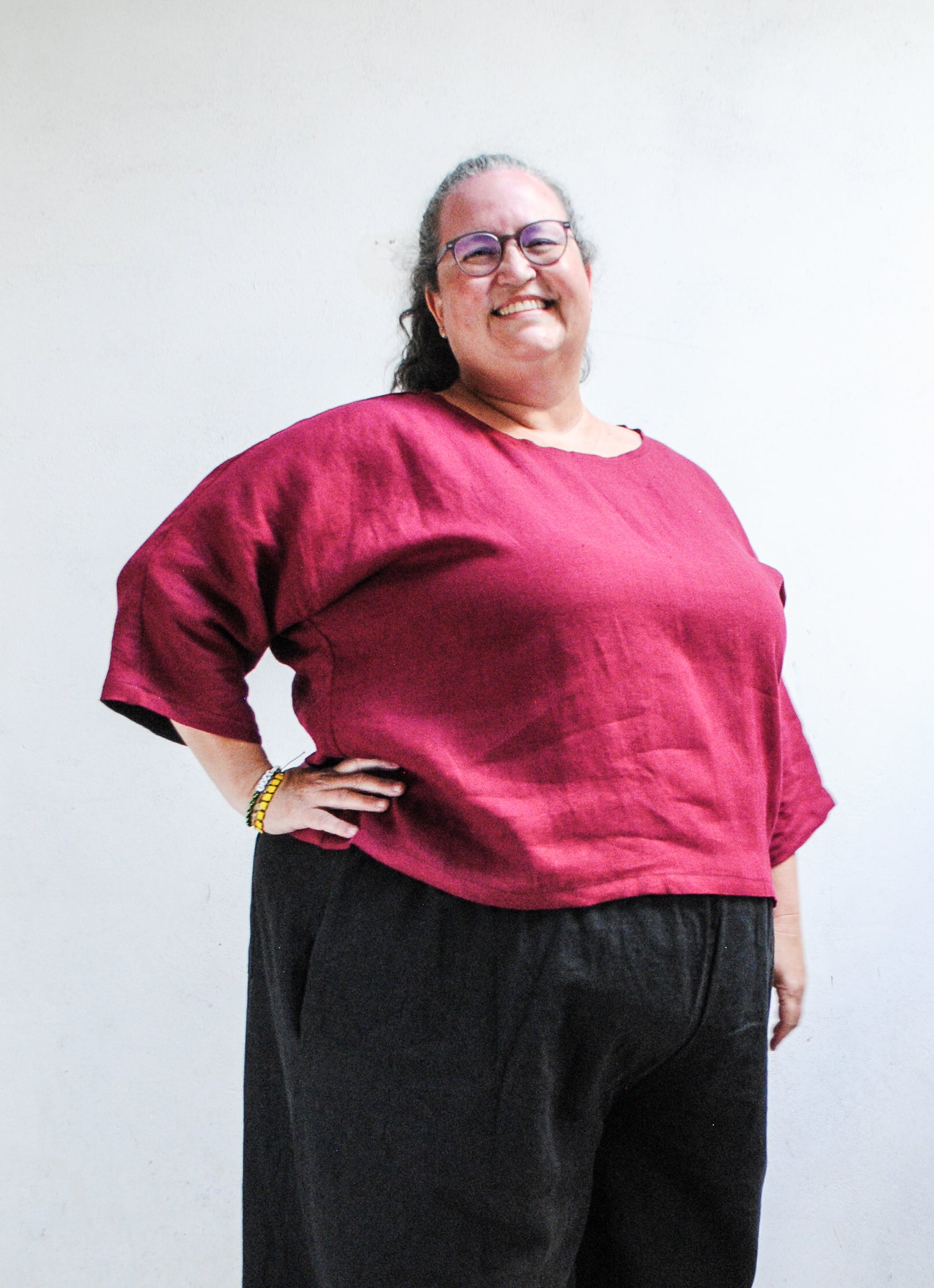 AS OF April 2025: We have updated the pattern on this shirt and it varies just slightly from before. Mostly we've added a bit of room on the armhole openings, lowered the high neck just a little, and the medium has become a small. If you wore a medium before, please note that the medium is bigger than it used to be. Refer to the size chart, let us know if you have questions!