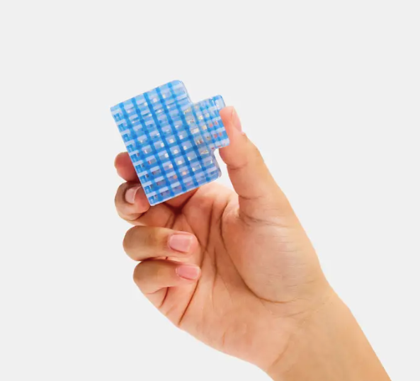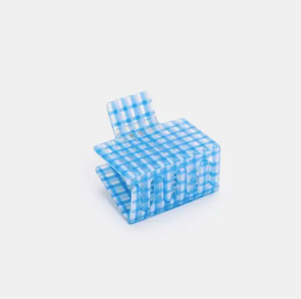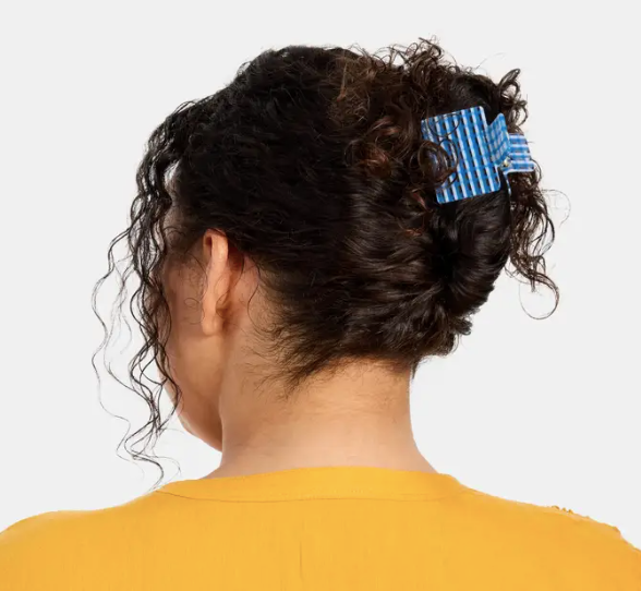 A rectangular box-shaped claw. Small-ish in size, big in grip. Clean lines but colorful. Recommended for all hair types and textures.