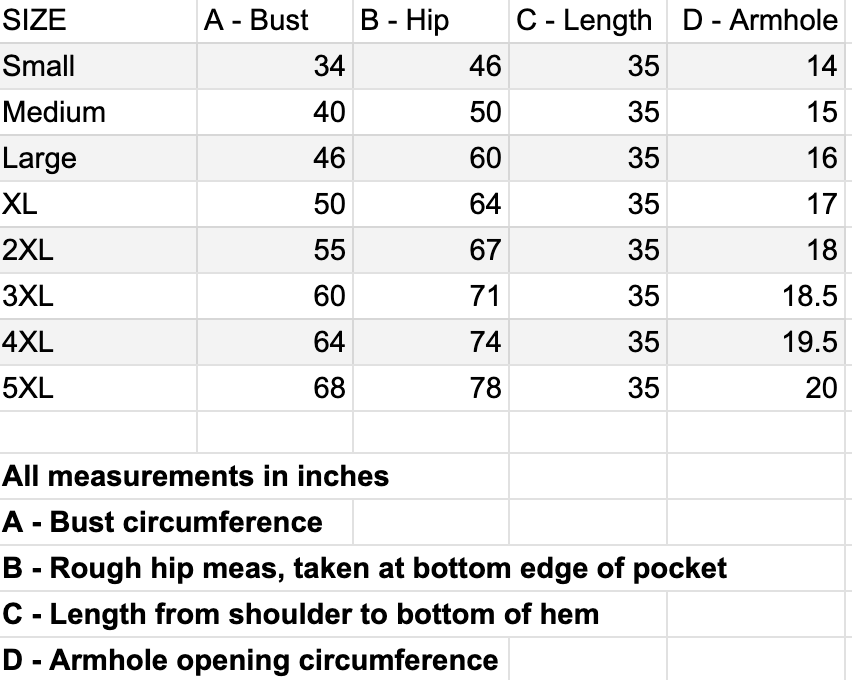 Size Chart measurements are of the garment itself so you can figure out how you want it to fit. Please contact us with ANY fit questions!
