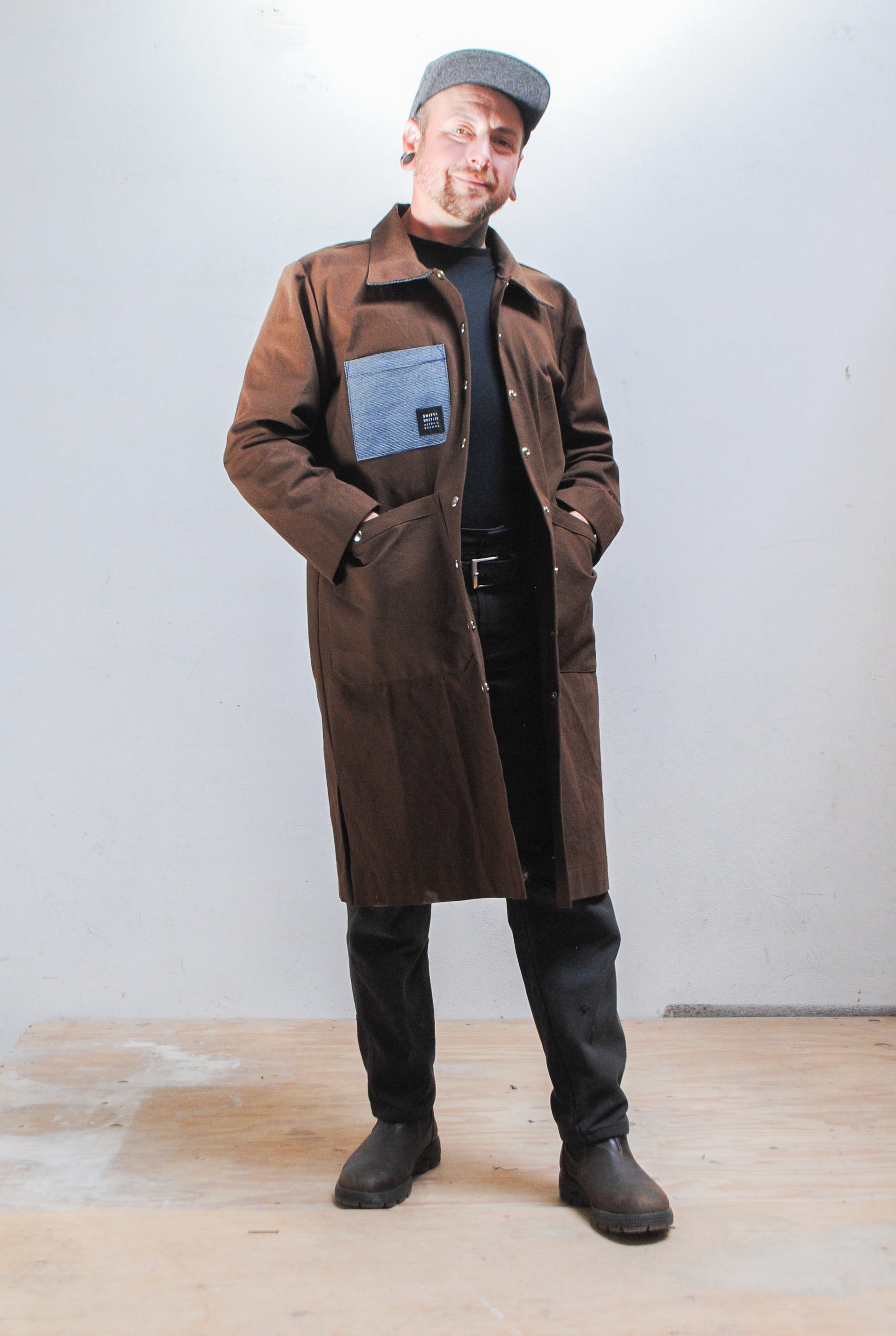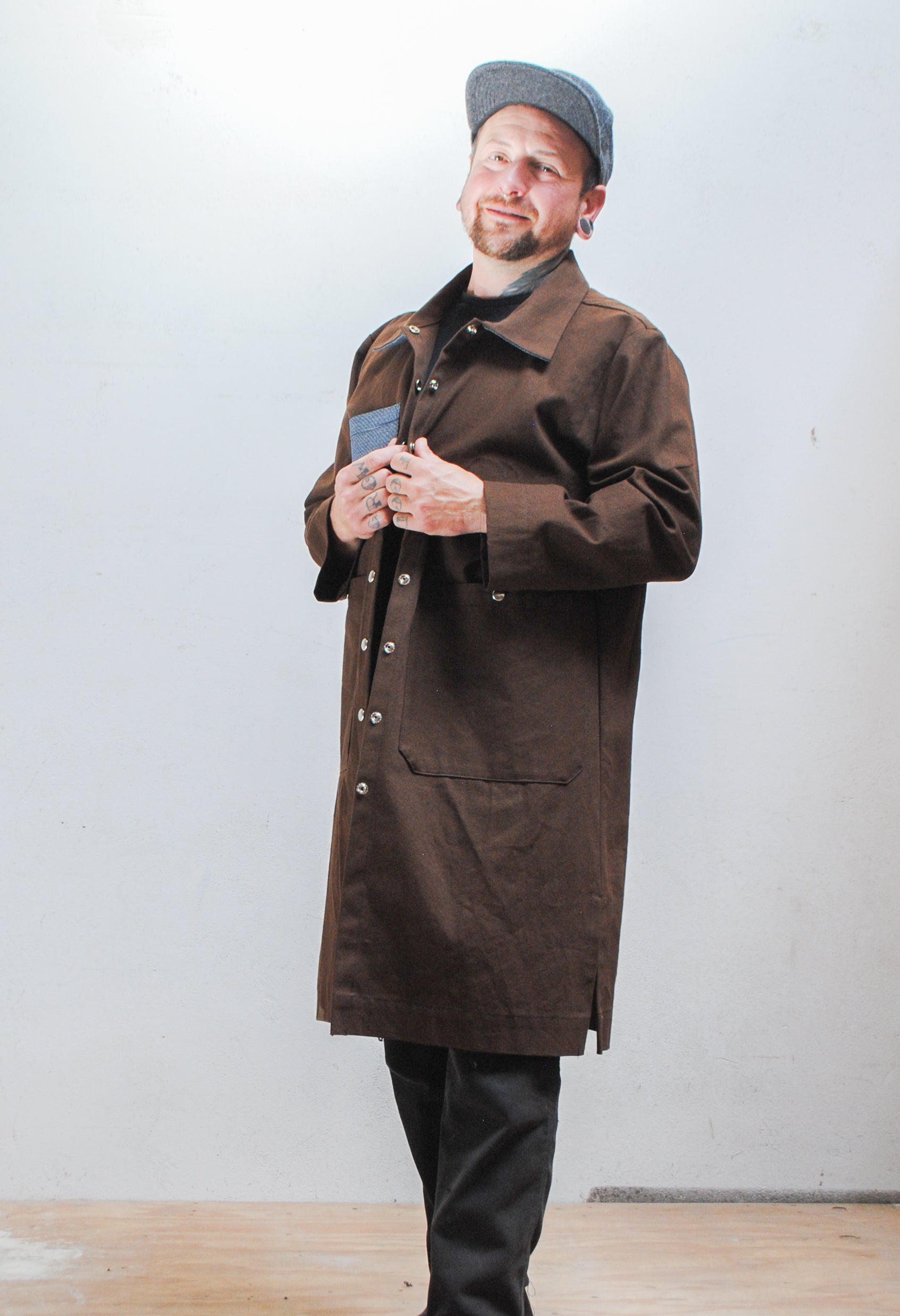 Classic chore coat features, including indigo pinstripe denim accents, a ton of snaps, aforementioned pockets (that also have snaps), and lots of protection from the elements and whatever work you're doing. Whether it's a long chore, or a short chore, you're gonna look put together in this deep chocolate canvas coat.