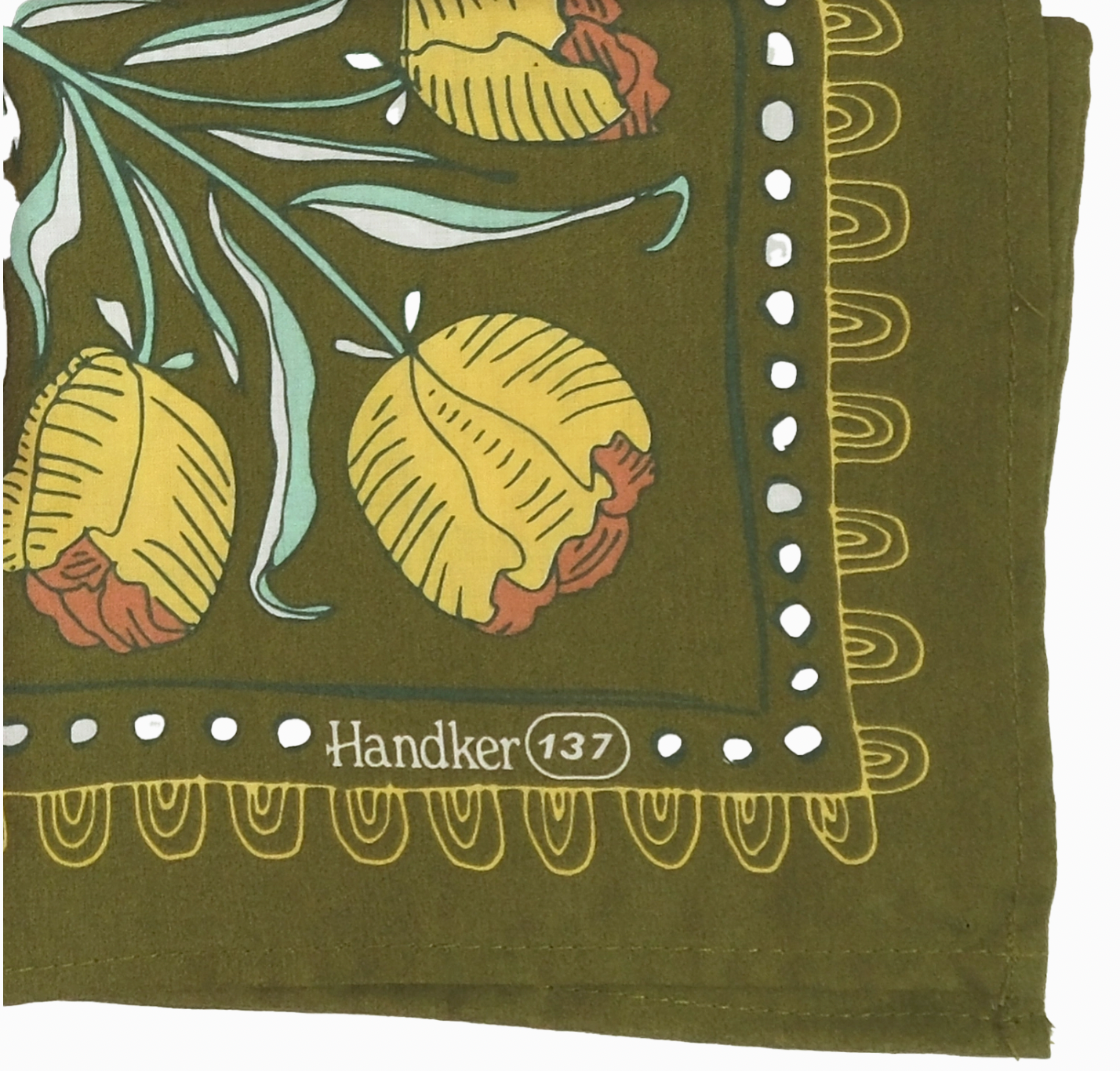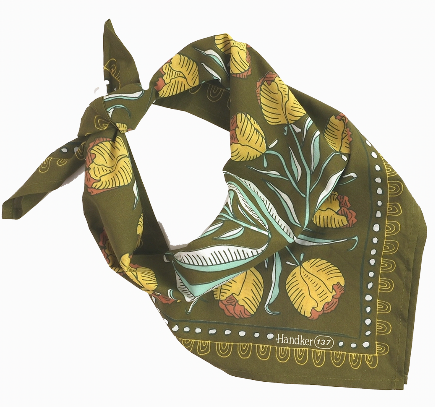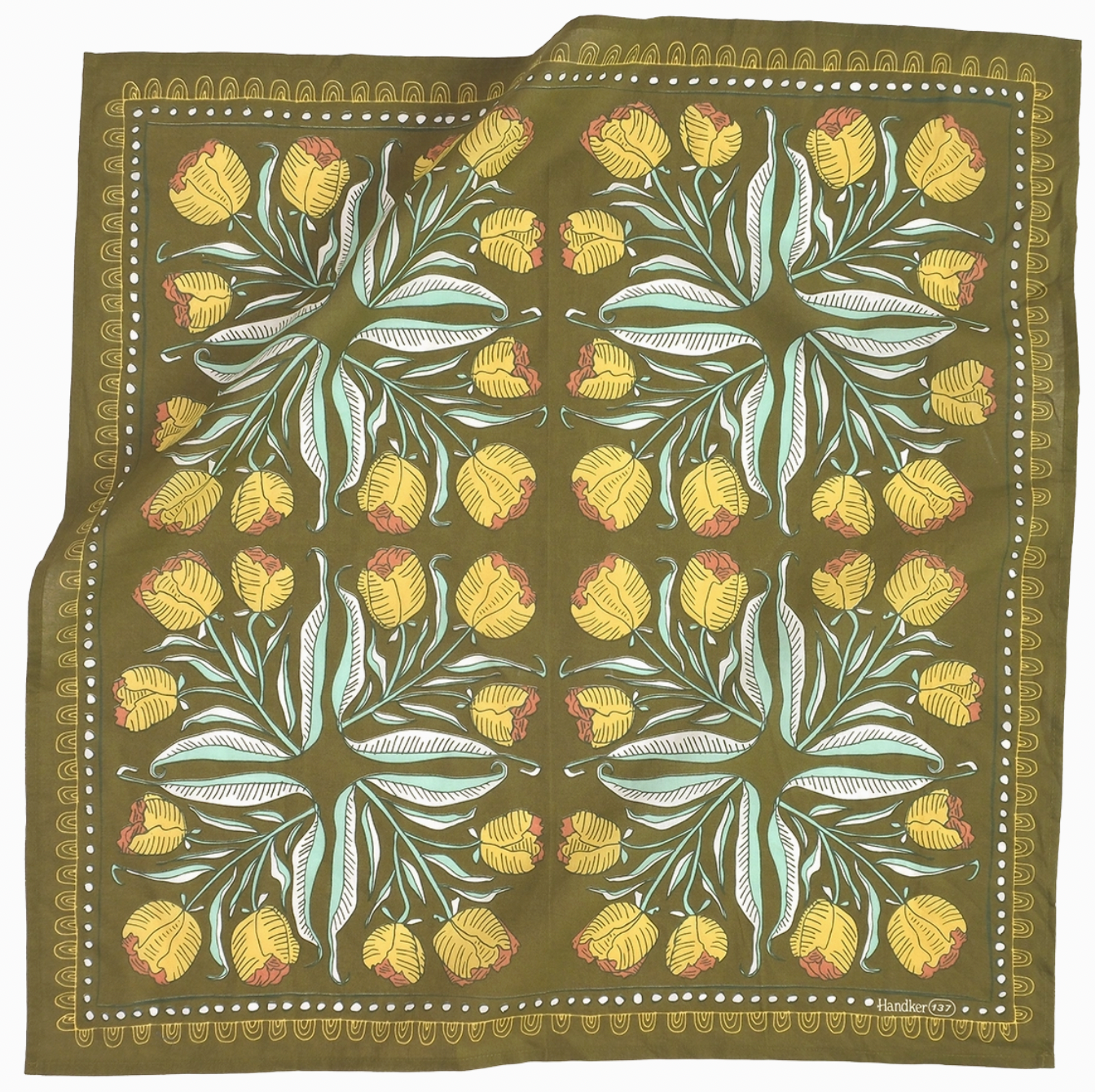 Hand-drawn original patterns, 23" x 23". 100% premium cotton, hand screen printed.