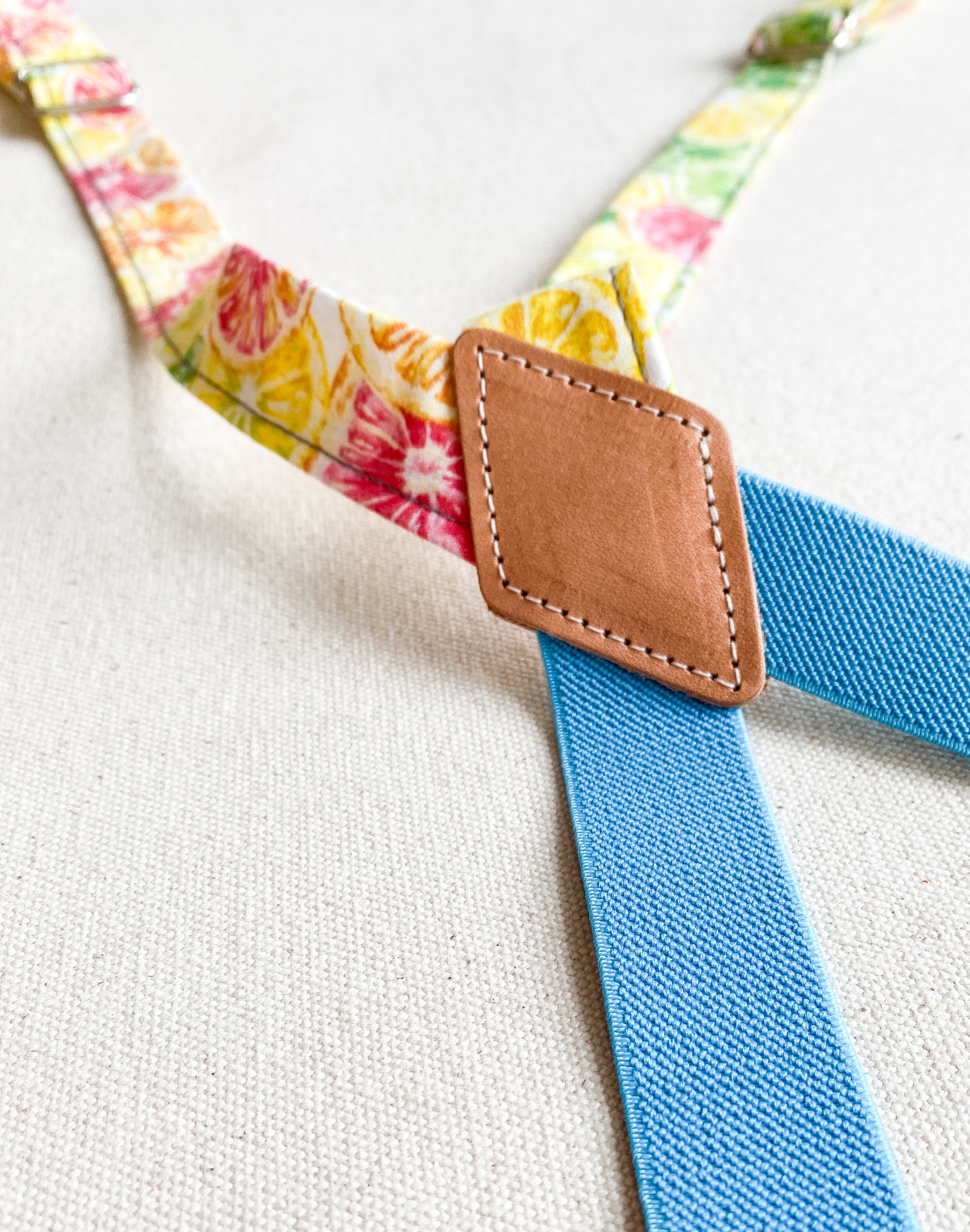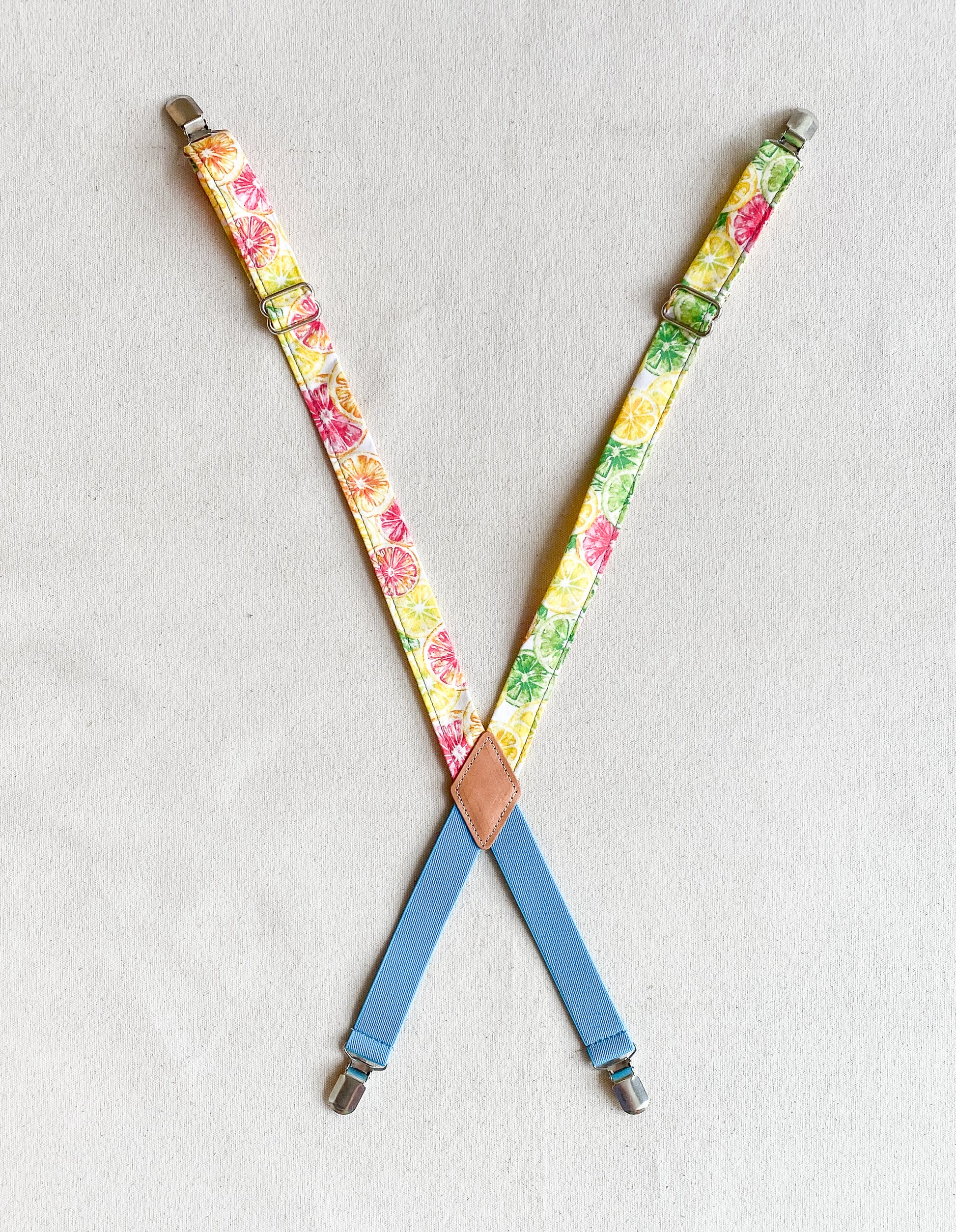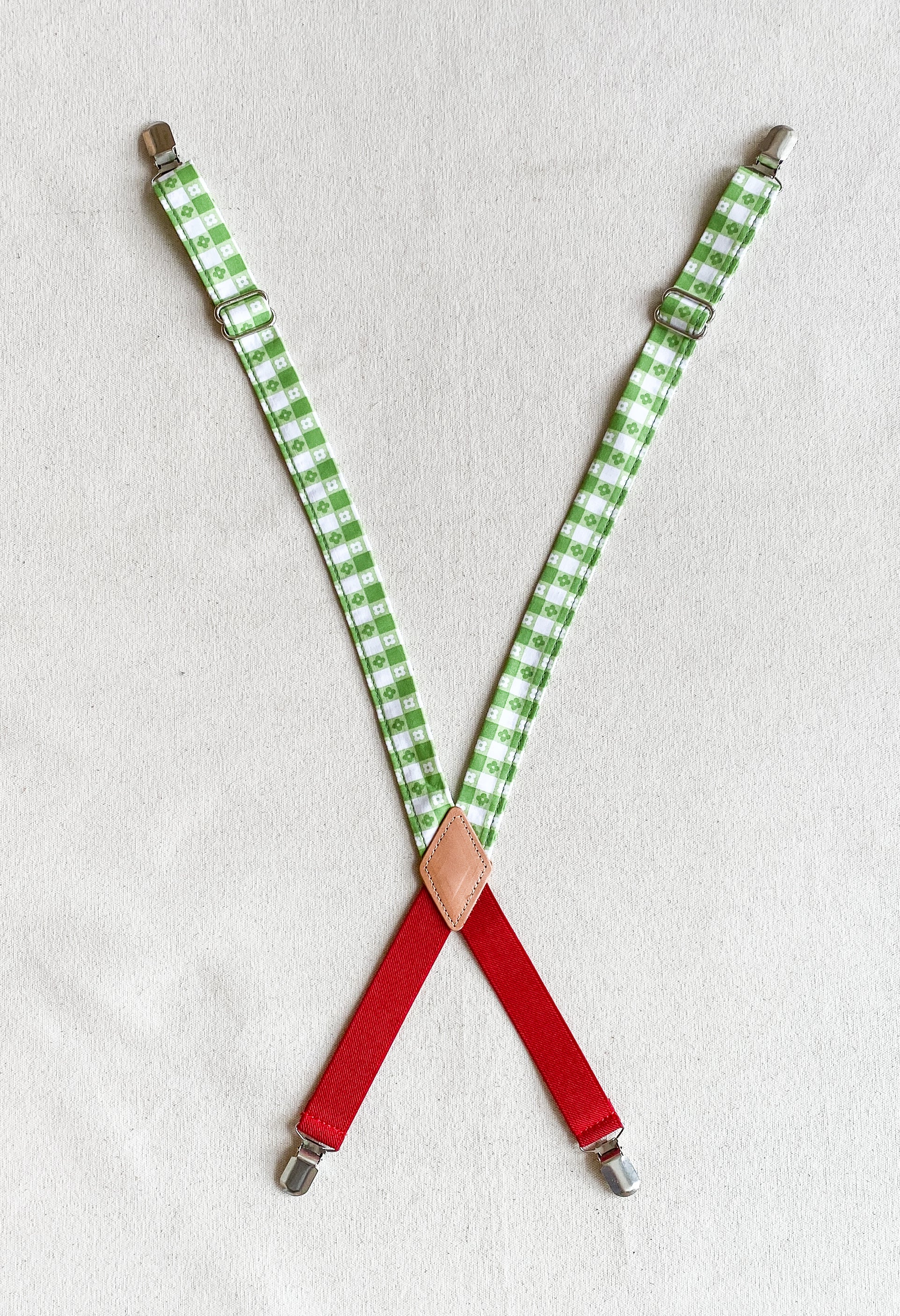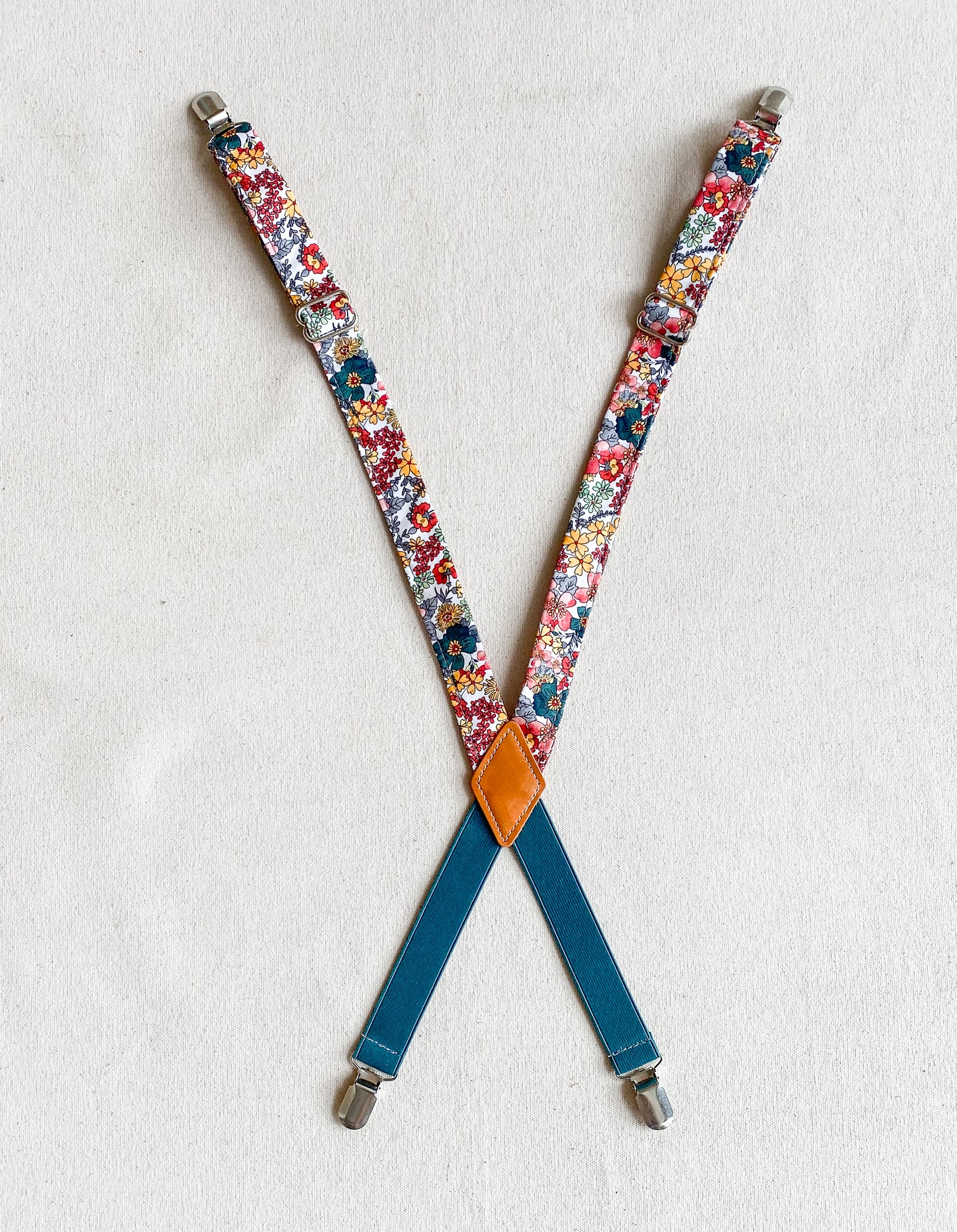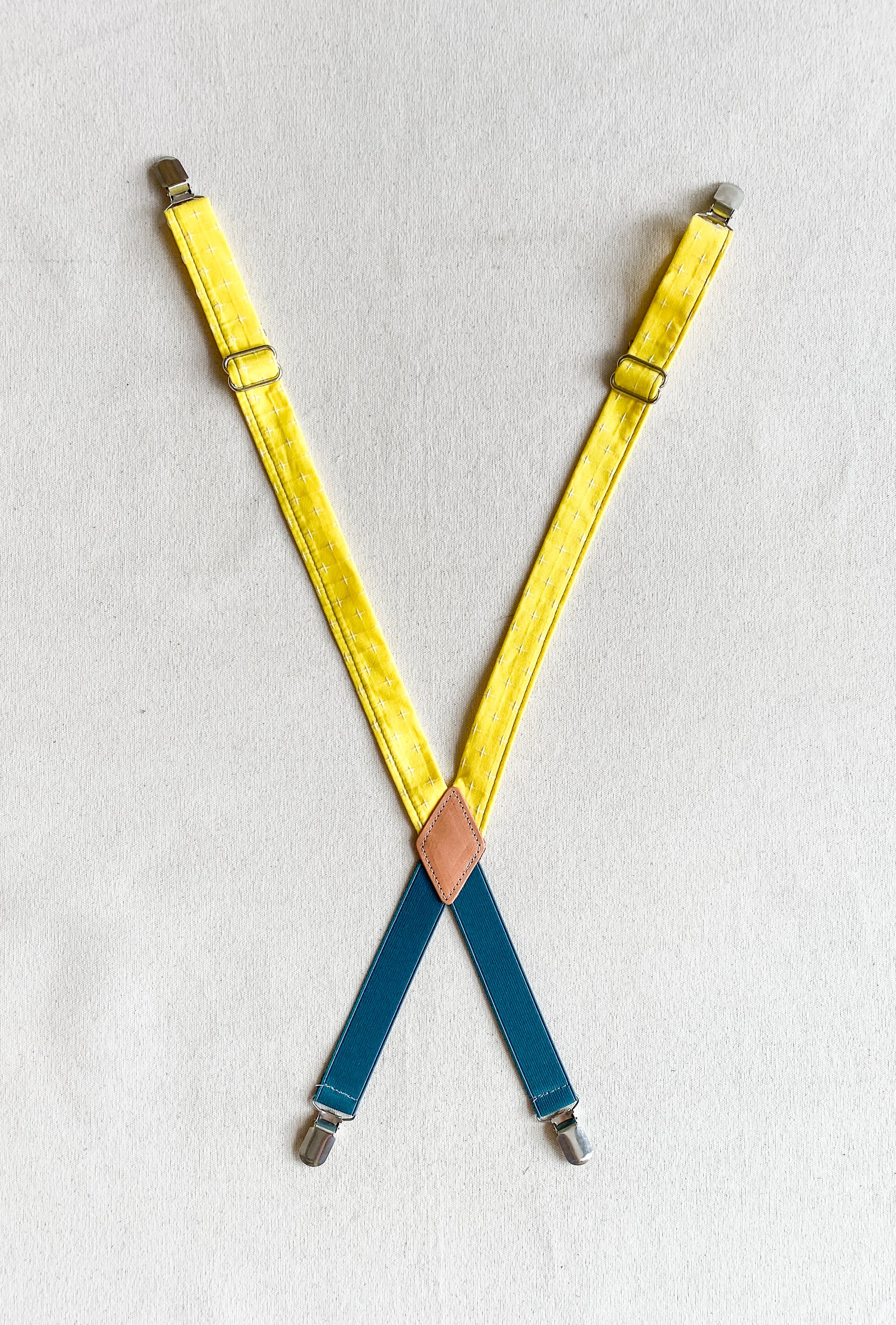 Amp up your Suspender Dress looks with these cute fabric suspenders designed and sewn in-house. Made mostly of non-stretch cotton fabric with a bit of elastic at the back to allow for comfortable movement (and another color opportunity), these will add a little pizazz to your usual Suspender Dress uniform. Finished with silver metal clips and glides for adjustability. Extend to about 28".