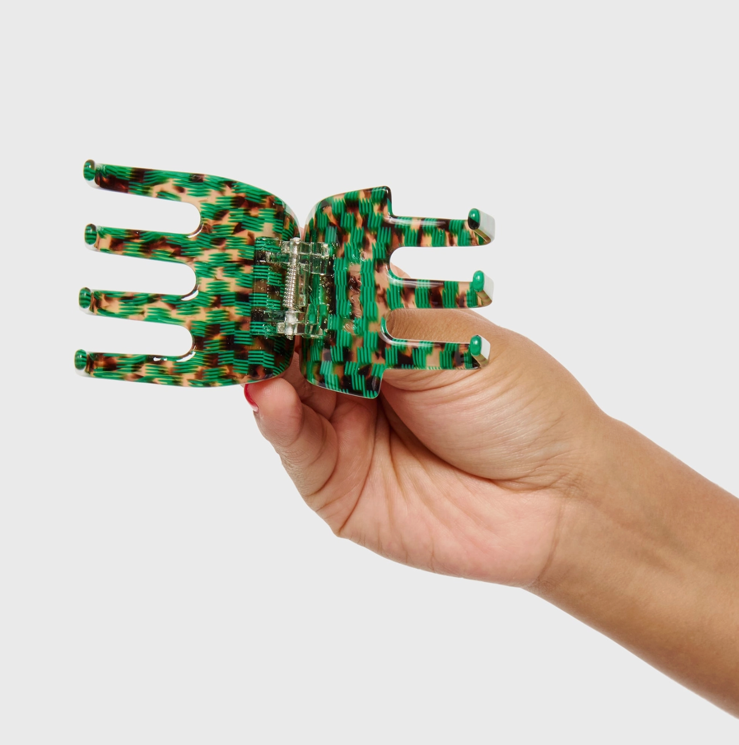 This medium sized claw is uniquely perfect for curly, textured, medium to thick hair. Large teeth give a gentle but firm hold, without crushing curls.
