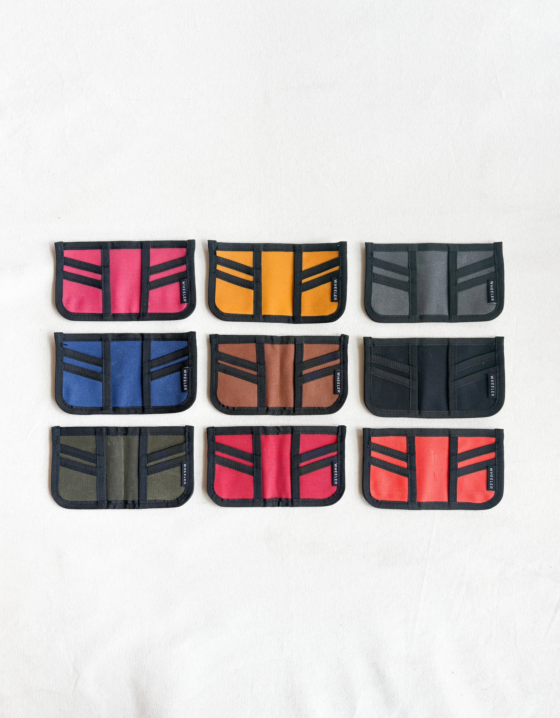 I bought this wallet in yellow at the same time I purchased the yellow card holder. I was thinking it would be a good option for when I use smaller purses or fanny packs. Plus I have a few Wheeler canvas bags in yellow (please make everything in yellow Nick!) so this matches perfectly! Now my cards and cash aren't loose or stuck in the side pocket when I switch to a smaller bag. More than enough space for the cards I use and need most and a few bills. Still looks great after taking a daily beating in my messy bags!